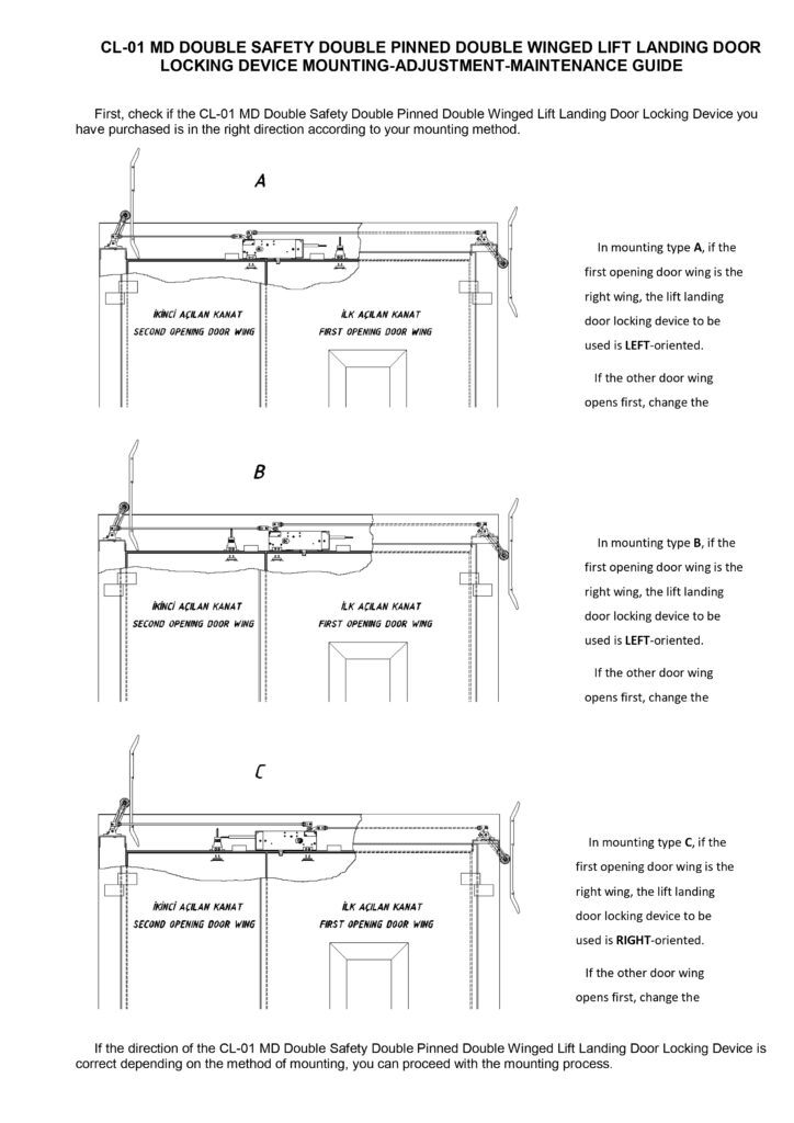 ابتدا بررسی کنید که آیا قفل مدل CL-01 MD که خریداری کردهاید، از نظر جهتگیری با روش نصب شما مطابقت دارد یا خیر.